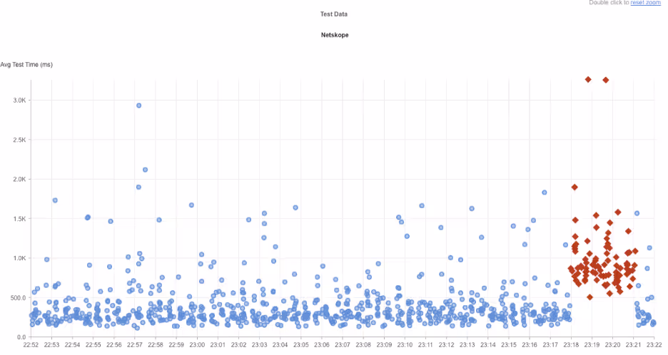Am 20. August 2025, um 3:38 AM EDT, entdeckte Internet Sonar einen Ausfall, der Netskope in mehreren Regionen der Vereinigten Staaten betraf. Während des Ausfalls wurden DNS-Auflösungsfehler für die Domain https://www.netskope.com/ beobachtet , beginnend um 03:38:16 EDT von mehreren US-Standorten aus. Abfragen bei Level-2-Nameservern lieferten aufgrund von 100 % Paketverlusten "unbekannte" Antworten.