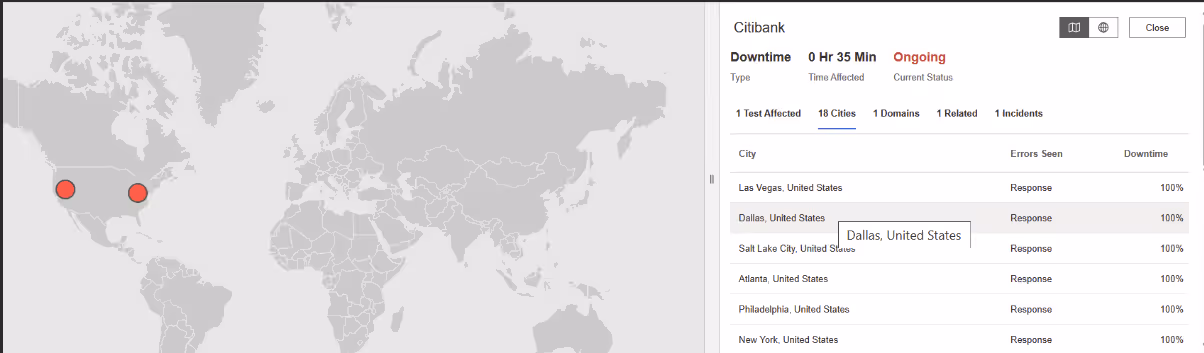 Von 3:10 bis 5:04 Uhr EDT waren die Citibank-Dienste in ganz Nordamerika unterbrochen. Die Kunden sahen sich mit HTTP 502 Bad Gateway-Fehlern konfrontiert, die anzeigten, dass die Front-End-Server die dahinter liegenden Banksysteme nicht erreichen konnten.