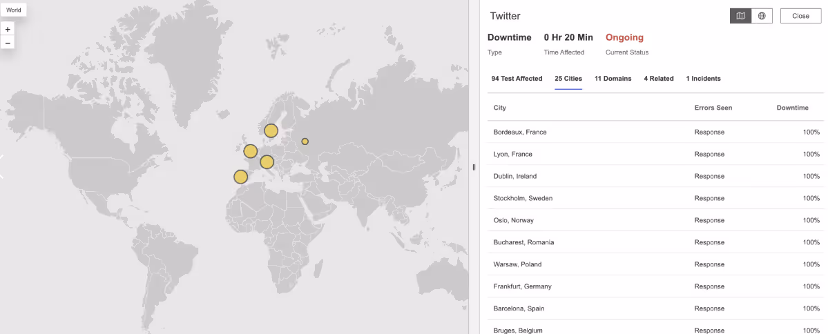 Auch wenn regional begrenzte Probleme schwieriger zu erkennen sind, zeigt dieser Ausfall, warum es wichtig ist, den gesamten Globus zu überwachen. Die Kombination aus langsamen Verbindungszeiten und 503s deutet auf eine Überlastung der Server oder der Infrastruktur hin. Für Teams, die webbasierte Dienste betreiben, unterstreicht dies den Wert der Internet-Leistungsüberwachung, um partielle oder regionale Ausfälle zu erkennen, bevor Kunden Tickets auslösen.
