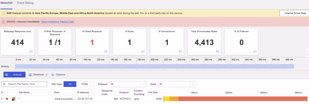 Auch wenn dieser Ausfall nur kurz war, bedeuteten 503-Fehler, dass die Server Anfragen nicht bearbeiten konnten. Bei Unternehmensanwendungen wie Concur können selbst minutenlange Ausfallzeiten den Finanzbetrieb stören. Eine durchgängige Überwachung, von der DNS-Auflösung bis zur Reaktion der Anwendung, hilft Unternehmen, die Zuverlässigkeit zu überprüfen und Schwachstellen zu erkennen, bevor sie zu sichtbaren Ausfällen führen.