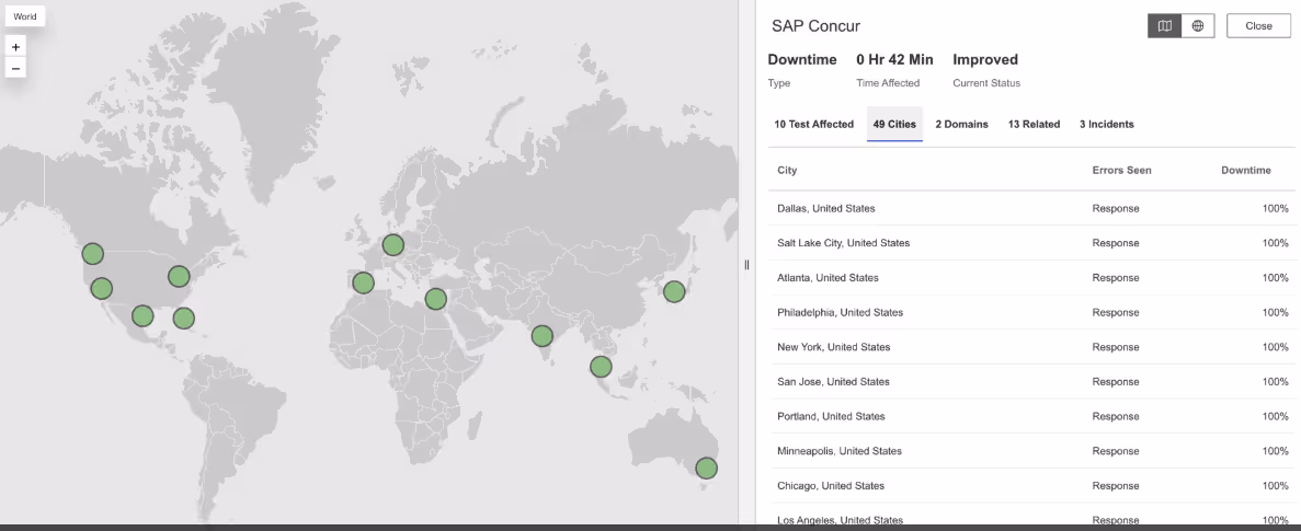 Da der Ausfall so viele Regionen gleichzeitig betraf, war er wahrscheinlich auf ein zentrales Problem der Cloud-Infrastruktur zurückzuführen. Globale SaaS-Dienste sind auf einen Lastausgleich angewiesen, um den Datenverkehr zu verteilen und die Leistung stabil zu halten. Mit einer synthetischen Überwachung über mehrere Regionen hinweg können Unternehmen die Verfügbarkeit weltweit bestätigen und sicherstellen, dass ihre Kunden nicht ausgesperrt werden.