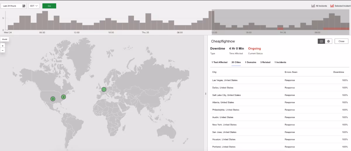 Das globale Netzwerk von Cloudflare blieb in Betrieb, aber da die eigenen Server von Cheapflightnow nicht antworteten, kam es für die Nutzer trotzdem zu Ausfällen. Um dies zu verhindern, richten Unternehmen häufig Backup-Ursprungsserver (zusätzliche Kopien ihrer Hauptserver) ein, damit der Datenverkehr bei einem Ausfall eines Servers auf einen anderen umgeleitet werden kann. Der Ausfall zeigt auch, wie Abhängigkeiten zwischen CDNs und Ursprungsservern zu Schwachstellen führen können. Durch die Überwachung des gesamten Internet-Stacks, von DNS über CDN bis hin zu Anwendungsservern, können Unternehmen schnell erkennen, wo die Kette bricht und Ausfallzeiten reduzieren.