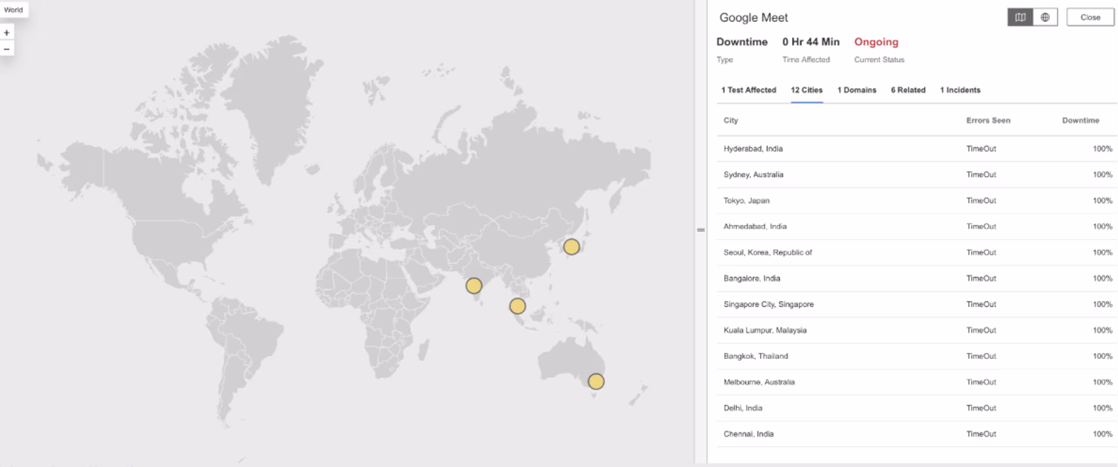 Dieser Ausfall verdeutlicht, wie weitreichende Backend-Ausfälle sich sofort geografisch ausbreiten können. Selbst wenn die Konnektivität in Ordnung ist, können serverseitige Probleme die Funktionalität aufhalten. Aus diesem Grund müssen Teams über eine externe Beobachtungsmöglichkeit verfügen, um Probleme zu erkennen und zu isolieren, die von der internen Telemetrie übersehen oder verzögert werden könnten.